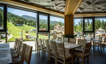 Hotel au pied des pistes de ski chambres spacieuses bien agencees tres propres et entretenues quotidiennement nourritures abondante et variee espace de jeux pour enfants adolescents.personnel souriant et attentif a la moindre demande du client Piscine et SPA tres propre tres relaxants apres le ski.