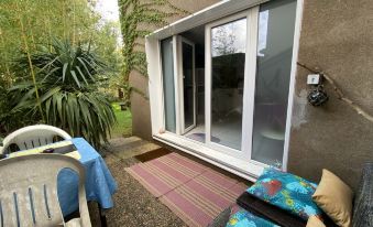 La gare la plus proche est Rezé Pont-Rousseau, qui se trouve à environ 2,6km de l'hôtel soit à peu près 5 min en voiture..Y a-t-il une gare à proximité de Beau Studio Accès Indépendant Dans Maison ?