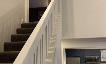 Located on the main floor, the master bedroom, with king size bed, also features your own private suite full bathroom. There are also two additional rooms with 2 queen beds and a detached full bath, conveniently located with the shared living area. Samsung smart TVs throughout. This home also features a washer and dryer for your convenience!