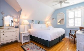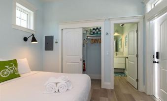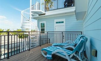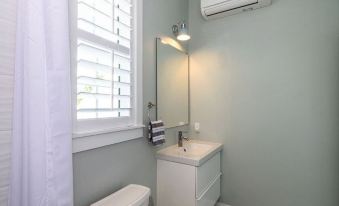 Seabreeze is a newly restored "old-Florida" cottage with living room, full kitchen, full bath and laundry on the first floor. Upstairs in main cottage is a king bed suite with ensuite bath and private balcony. It also has a small futon bed perfect for a child or teen. Just across the deck is a separate, private guest suite with queen bed and ensuite bath. The view from the rooftop deck is out of this world with bay and ocean views - perfect for morning coffee or a sunset drink. The courtyard has al fresco dining, BBQ and a refreshing hot/cold outdoor shower for after the beach or for our "4-legged" guests.