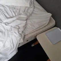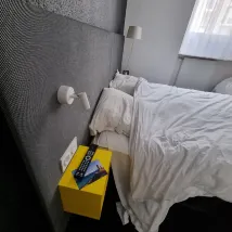 Bien. Pour deux adultes et un enfant. La réceptionniste était présente en soirée. Chambre moderne. Ascenseur. Je sentais le surmatelas ! Literie correcte mais j'ai connue mieux dans d'autres hôtels. Lumière bleue la nuit avec la carte. Le matin, pas possible d'allumer la lumière dans la chambre. Une liseuse, pratique sur un chevet du lit. Sur le second chevet, pas possible d'allumer la lumière. En centre ville mais pas de bruit. Joints à revoir près de la baignoire. Plateau de courtoisie avec bouilloire.