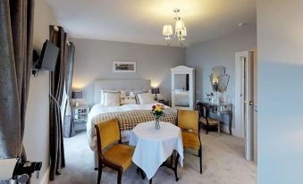 Although the room was quite small, it was perfectly adequate for a couple nights stay as in our case & and lovely view across the harbour and bay from a small window beside the bed. The bed very comfortable and a good size king. Bedside table on left hand side and a dressing table doubled up as the other bedside table. A wardrobe and beside that, a little table for tea/coffee making stand. Bottles of tap water a nice touch and useful. next to that was the door to the ensuite and next to that was the bedroom door. This made up the whole room, no room for a chair or extra table to sit at if you wanted to use your laptop or tablet. However, there is plenty of suitable seating in other areas in the house that you could use for this purpose. There are plenty of hooks on back of doors, a large drawer in the base of the wardrobe with quite a lot of space and hangers. On top of the wardrobe was a small TV with a remote control. The ensuite is compact but lots of storage. The corner shower was an okay size but a bit small if you are a slightly larger person as I am, then it is a tad tight but doable. The B&B house is quite charming, old world but with modern touches and some nice seating areas for the use of guests. Staff were all friendly and helpful and letting us park in the car park before our room was ready so we could go and get lunch and come back later. Everywhere including our room was very clean and tidy. The place felt very homely and welcoming. A short walk to the town and outer harbour in the other direction took about 5 minutes. It is down hill going and a uphill coming back with steps and bit steep hill to tackle. I have slight mobility issues but I managed reasonably well with a little help when needed from my husband. All in all a nice place to stay in a good location at a reasonable price.