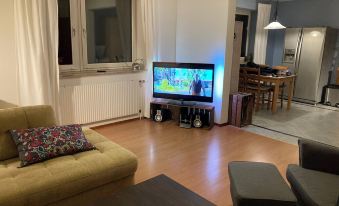 On approximately 90 m² you have two bedrooms, a living room, kitchen and bathroom. The garden has a free-standing area under which you can sit outside even in the late summer. Barbecue and garden furniture are also at your disposal. The master bedroom has a 1.80 wide double bed, fitted wardrobe and a flat screen TV (only for DVD's) from here you can also go directly into the garden. The second room has a pull-out sofa bed for 2 people, a desk is also available there. The living room is equipped with a TV (Amazon Fire TV Stick for Amazon Prime and Netflix) DVD player and music system. The spacious bathroom has a corner bath, which can also be used for showering.