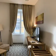 Near Fisherman’s Bastion and Buda Castle. A good spot to stay in the Buda. The room is quite big but not a very new hotel. The wardrobe door was broken. The shower glass panel not really good design, the water will still splash out.