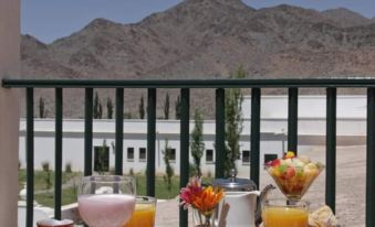 Très bel hôtel au bout d'une piste caillouteuse, en dehors de Cachi (env. 10 mn). Très beau cadre, vue 360° sur les paysages depuis le toit terrasse avec coucher de soleil magnifique. L'architecture des bâtiments et la disposition des pièces donnent l'impression d'être dans une grande hacienda. Belle chambre, spacieuse, claire; très bonne literie Piscine agréable bien que venteuse. Spa payant. Petit déjeuner buffet tout à fait correct (choix et qualité des produits proposés) Nous ne sommes pas restés diner car les prix sur leur menu étaient plutôt élevés et que la place de Cachi nous ouvrait les bras
