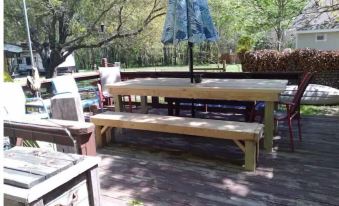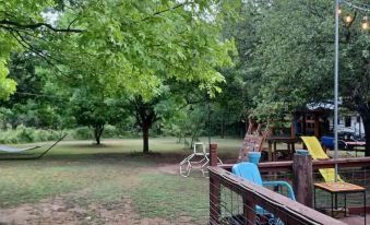 Great location for floating the river at texas tubes! You have to uber to the front of the float if you don't wanna drink and drive but the end of the float is an 8 minute walk and the shuttle bus drive will actually drop you off if you don't wanna walk. Zip lines for the kids, darts, and great outdoor space!