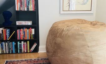 Host dinners outside at home using our fully equipped kitchen and our large patio table under the stars, or choose from our list of recommended restaurants or local activities. Relax afterwards on the front porch or back-deck (with smokeless firepit); chill out on the beanbags in our secret library that kids love; or even burn it all off with yoga or on the bike in our exercise room!