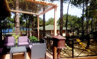 L'accueil des différents employés était très bien. Le cadre est idyllique au calme et en étant pas loin de la ville. Toutes ces habitations joliment conçues dans toute cette verdure de pins sont top. La vue sur la mer est fabuleuse. La salle de bain (toilettes) est un peu étriquée. Les places de parking attitrées sont un peu petites en fonction du véhicule. Il n'y a pas de télévision à ma grande surprise mais c'était écrit dans les prestations il manque juste ça à notre goût !