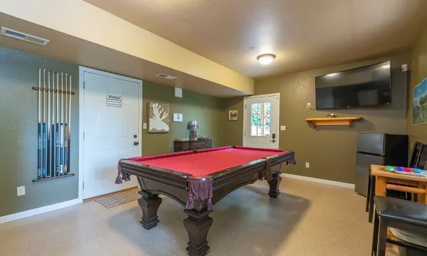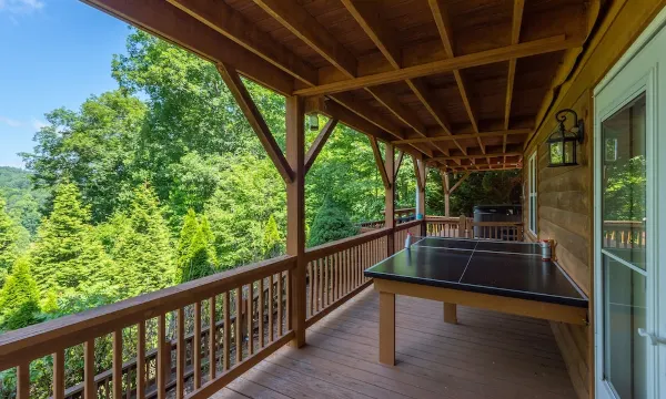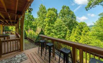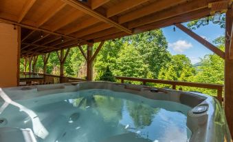 The lower level is where you will find the the luxury hot tub, mountain view, along with a custom made bar with seating for your family to gather and make lasting memories.