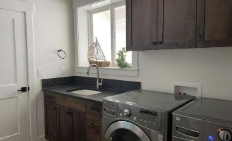 We were in town for our son’s wedding. The house was fantastic, we had dinner with some of the groomsmen and their parents and we all fit in the open main living area and there was plenty of parking. The house was well stocked and the beds were comfortable. The outside space was good, when the yard is finished it will be even better. We would definitely recommend this home and would happily stay again!