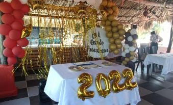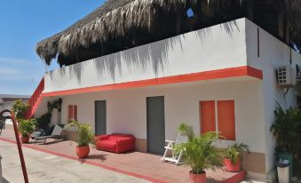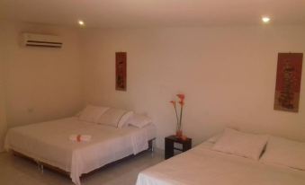 La habitación y el lugar en general son muy agradables, es justo en manzanillo super cerca del lugar donde debiamos, de hecho nos fuimos caminando, es suer cerca a la playa y en la playa. Las personas que atienden son muy amables y cabe destacar que la comida es deliciosa. Desayunamos y almorazamos en el hotel, totalmente recomendado si se quieren relajar en manzanillo. Las sabanas y las almohadas muy comodas, el cuarto tiene baño privado lo que es genial, tiene televisor, closet y aire acondicionado. Lo unico malo es que hay arena por todos los alrededores y cuando uno ingresa a la habitación el piso rapido se ensucia pero pudismos barrer con una escoba que tenian disponible para usar.