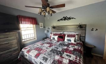 The possibilities are endless in this fully furnished rustic and unique log cabin. You'll never find another cabin with unique features like this one has in East Tennessee. The cabin is less than 5 miles from everything but also has a country charm and feel. Its located in the beautiful Lynn Valley area of Elizabethton TN, a highly sought after area that the Watauga River flows through. Enjoy your morning coffee on the front porch looking out at the peaceful pond right out front. The two pond fountains sound amazing and add tranquility. This one bedroom one bath cabin has been meticulously maintained and is always meticulously cleaned and rental ready. 5 Blocks from the Watauga River, some of the best trout fishing in the entire country is feet away. Wireless internet, Samsung 75" Ultra 4k UHDTV with surround sound, 42" HDTV in master bedroom, excellent cell service (AT&T), outdoor fire pit/ grill combo and a Charbroil electric grill. The futon in the den will sleep two more (double bed), master bedroom sleeps two (King). Dish Network satellite HDTV service with more than 200 channels to chose from.