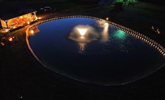 Update: 8/3/2023 The cabin was just re-stained, as well as the wood around the pond, 15 green giants were added, 30 led landscape lights, and landscaping timbers, as well as the fire pit.