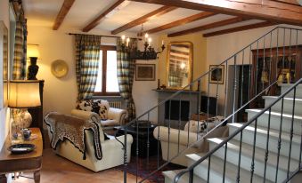 Le salon a une cheminée qui fonctionne qui crée une atmosphère pour ceux qui aiment découvrir le bel automne ou l'hiver en Toscane.