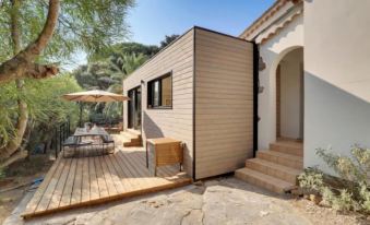 L’aéroport le plus proche est Aéroport de Toulon - Hyères, situé à environ 42,7km de l'hôtel soit à peu près 59 min en voiture..Quel est l'aéroport le plus proche de Elegant Villa with Heated Pool – Walk to Beach & Shops ?