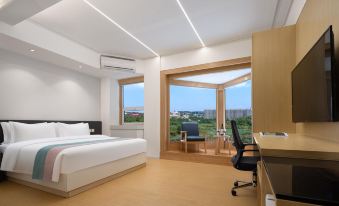 Pastel Street-View Double Bed Room (Beautiful View + Garden-View + Fridge)