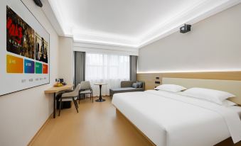 nice 地段很好哎,對面就是吾悦廣場,吃喝玩都非常方便。☺️☺️不錯不錯,交通也很方便,在市中心,旁邊有地鐵,離景點都不算遠,到最近的青果巷晚上去逛逛風景不錯。酒店還可以免費停車。前台的小姐姐服務態度好,辦理入住絲滑順暢,還指引我去電梯。你進房間就感覺這個房間特別的高級,還有超大投屏😍房間還有智能系統,可以小杜聽歌。衞生間也有乾濕分離,私密性好非常舒服。訂的大床房床上用品柔軟質地很好,床墊很舒服,雖然在市中心,但是晚上很安靜,性價比高!推薦推薦!!!😘😘下次還會選擇這家酒店!