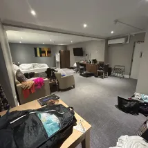 Good service and staff very friendly. Facilities very tired though. No hooks in bedroom or bathroom. Bed too soft. But reasonable price and bar/food good.