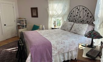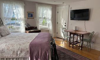 Named for the original owner and builder of Ship's Light, the Prince Harding apartment is a one-room studio, with a kitchenette, bath with shower and lovely front porch. Airy and light, the main room includes a queen-sized bed, dining table & chairs, comfortable seating area, electric fireplace, and smart-TV with streaming access to network channels. Wireless internet service is available throughout the house. Perfect for a couple, the fully-equipped kitchenette has a small refrigerator with freezer, induction cook-top, microwave, toaster, and coffee maker. Enjoy your morning coffee on the private front porch with your loved one or watch the sunset while sipping a glass of wine. The charm of the apartment is further enhanced by the warm glow of newly-laid wide pine and antique floors.