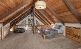 Upstairs, the open loft offers additional sleeping space with three twin beds, making it a great retreat for younger guests.