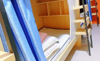 離地鐵口有點距離,適合零時落腳點,床位的被套什麼的得自己鋪,裏襯有異味但問題不是很大,上鋪的梯子設計得不是很好,間隔太短了,牀板稍微動作幅度大點會有聲響,床鋪有一個小燈,但不是很亮,照明區域在前半段,晾衣區比較宅,廁所洗漱淋浴是男女共用,設施比較陳舊,廁所會有異味,有熱水和吃飯的地方,洗漱用品儘量自己準備,他那裡可能會提前用完,衞生一般,整體其實也還行,用了積分17一晚,這個價格對於經濟不是很寬裕的人來説也可以