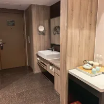 The room was really spacious and clean. I had a balcony so I am able to sit outside and get some fresh air. The view outside of my room was an apartment complex so it felt as if I lived there. Would book this hotel again. Definitely will book again in the future.