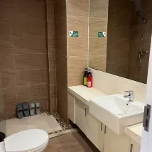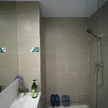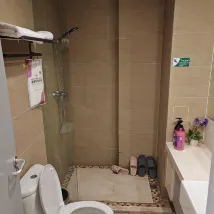 La cabine de douche n'avait pas de porte, ce qui entraînait de fortes éclaboussures. La propreté du balcon laissait à désirer. Certains équipements de la chambre étaient un peu vétustes et jaunis. Le canapé en tissu était si sale que nous n'avons pas osé nous y asseoir.