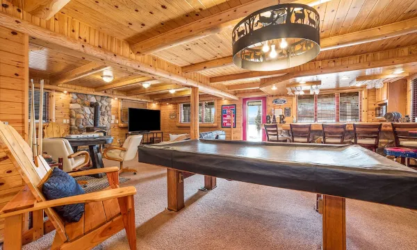 Entertainment Galore: Our house boasts an array of entertainment options including 3 cozy fireplaces, a dedicated board game loft, a wet bar, an expansive game room with arcades, pool table, foosball table, poker table, darts, and more. For those fitness enthusiasts, we even have a lake-facing exercise area with free weights, yoga mats, and a Peloton bike+.