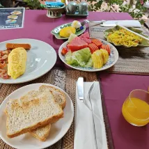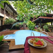 L'hôtel est petit et intime, avec piscine et service de blanchisserie. Le service était excellent. Le rapport qualité-prix était bon. Seul bémol : la climatisation bruyante et impossible à régler. Situé sur la route, il n'était pas très silencieux. Le petit-déjeuner était également bon, avec une touche thaïlandaise.