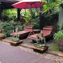 J'ai séjourné dans plusieurs hôtels à Chiang Mai, et celui-ci était mon préféré. La cour est si paisible, le paysage est magnifique et c'est vraiment unique. Le personnel est également très accueillant. Le meilleur dans tout ça, c'est qu'il y a un chat très intelligent et amical, Lucky, un chat noir pur avec un petit nœud papillon ! Il est tellement mignon ! Il patrouille dans la cour tous les jours et joue avec les gens. Il est tellement vif et sage. J'étais si triste de partir, mais je reviendrai sans hésiter ! C'est absolument merveilleux à tous points de vue ! J'adore cet endroit !