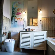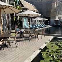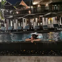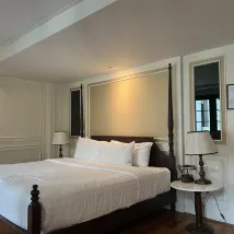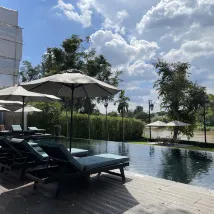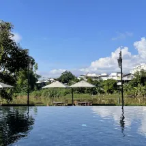 La salle est assez unique, j'aime ça. Donnant sur la rue, la chambre dispose de portes doubles et l'insonorisation est acceptable. Il y a un vieux banian dans la cour, plein d'esprit féerique. La piscine est chauffée et a de bonnes critiques. matin
