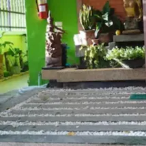L'intérieur de la pièce est bien décoré. Il existe des installations complètes. Mais la salle de bain est glissante et il faut faire attention. Le rez-de-chaussée dispose également d'un coin café pour vous désaltérer. Parking interdit
