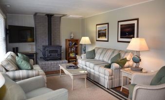 The fully stocked kitchen is a chef's dream, featuring a stove, oven, refrigerator, grill, microwave, lobster pot, dishwasher, coffee maker, kettle, blender, toaster, and ice maker - everything you need to prepare delicious meals. Dine together at the table or step outside and fire up the grill for an alfresco feast.