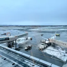 Il y a une petite fenêtre dans la pièce pour observer le décollage et l'atterrissage de l'avion, et elle se trouve juste au-dessus de l'une des portes d'embarquement.