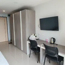 Nous sommes allés à Bang Saen pour une nuit et avons réservé une chambre à l'Onpa Hotel & Residence. La chambre était bien, très propre, le lit était doux et confortable. Depuis le balcon de la chambre, on aperçoit un peu la mer. L'hôtel n'est pas à côté de la plage. Mais ce n'est pas très loin de la plage de Wonnapa. Tu peux marcher.