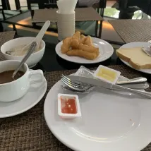 Réservez une chambre ici avec petit-déjeuner. Il y a beaucoup de petit-déjeuner. Il existe une variété de choix, pratique.
