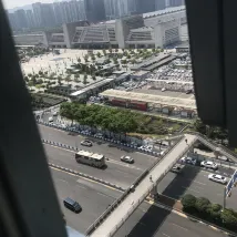 À la sortie de la gare de Chongqing, il suffit de regarder sur la droite pour repérer deux grandes tours : l'hôtel se trouve dans la tour de droite, juste après avoir traversé la passerelle au-dessus de l'autoroute. L'emplacement est vraiment idéal, pratique et central.
