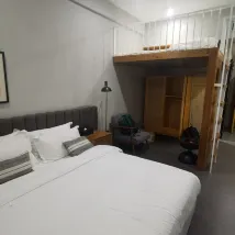 J'y suis resté deux jours. Le premier jour, le sèche-cheveux dans la chambre n'avait pas d'air chaud. J'ai dû me coiffer pendant une demi-journée. Les bonnes critiques étaient que les draps étaient très propres et là. il n'y avait presque pas de poils dénoués. L'autre environnement était moyen. Après tout, le prix n'était pas cher et le café était plutôt bon.