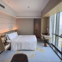 Nous sommes arrivés à l'hôtel pour nous enregistrer à 11 heures ce jour-là. Parce que nous étions membres, la réception nous a surclassés dans une chambre Premier avec vue sur la rivière et nous avons pu partir tard jusqu'à 14 heures le lendemain. Je donne un coup de pouce à l'hôtel. La chambre offre une vue imprenable sur la rivière et la montagne, et est spacieuse et lumineuse. Le seul inconvénient est qu'il n'y a pas de canapé ni de table basse, pas même un endroit pour s'asseoir. Il n'y a qu'une chaise de bureau, ce qui n'est pas pratique pour deux personnes. Au départ, je voulais m'asseoir sur le canapé et profiter du fleuve Yangtze, mais j'ai fini par devoir m'asseoir dans le hall. Assis sur le canapé, je pouvais admirer les bateaux de croisière qui passaient sur le fleuve Yangtze. L'attitude du serveur était plutôt bonne et il m'a même demandé si j'avais besoin de quelque chose. L'environnement général de l'hôtel est très bon. Il y a un grand centre commercial en bas, et le métro léger est également en bas, ce qui rend les déplacements très pratiques.