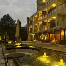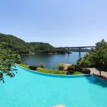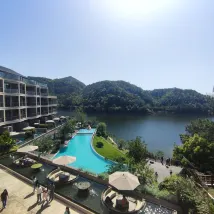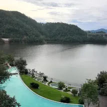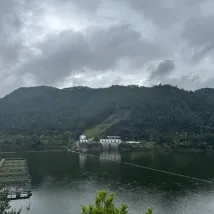 The hotel is a bit far from downtown, so taxis can be hard to find. However, it’s surrounded by a lake and mountains with stunning views. The amenities are slightly dated but well maintained, and the large, clean pool is a highlight. The restaurant serves excellent food and the staff are very friendly—perfect for a quiet getaway.