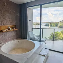 Un séjour absolument parfait ! Les baies vitrées de la chambre offraient une vue imprenable sur les montagnes et le lac, un véritable tableau. Mon coup de cœur ? La grande baignoire près de la fenêtre ; se prélasser dans le bain en admirant le paysage était un pur moment de détente. David, le majordome, était aux petits soins et a réglé avec brio tous les petits soucis rencontrés durant notre séjour. Un hôtel véritablement exceptionnel, un petit bijou à découvrir absolument ! Je le recommande chaudement !