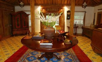 An antique traditional Javanese house with great views. Perfect for couples, solo adventurers, families with kids and big groups. Our bungalows are traditional antique Javanese house. We have a gallery filled with antique Indonesian furniture that you can enjoy. The spacious gardens are filled with tropical fruit trees such as Durian, Mangos, Rambutan, Guava, Jackfruit etc. If you're in luck, you can meet some forest animal such as Eagle, Squirrel or Turtledoves. It is a perfect place to spoil your senses in natural environment. You can refresh your nose with fresh air, rest your ears with quiet surrounding and relax your eyes with calming light.