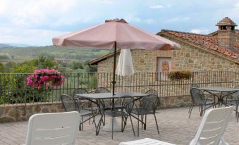 Maison de campagne "Casa Graziani". 3 maisons dans la résidence. 9 appartements dans la résidence. Dans le hameau de Schiacciato, à 13 km du centre de Città della Pieve, à 16 km du centre de Cetona, à 46 km du centre de Perugia, à 10 km du lac, dans la verdure. En commun: terrain 4'000 m2 (clôturé), jardin entretenu avec pelouse et arbres, piscine (16 x 8 m, profondeur 120 - 180 cm, disponibilité saisonnière: 01.Mai. - 30.Sep.). Ping-pong, four / barbecue en dur, espace de jeux pour les enfants. Infrastructures de la Maison: sauna (en sus). Salle fitness, baby foot, vélo à disposition. Place de parking sur le terrain. Supermarché 3 km, arrêt de bus 400 m, gare ferroviaire "Chiusi Scalo" 7 km.