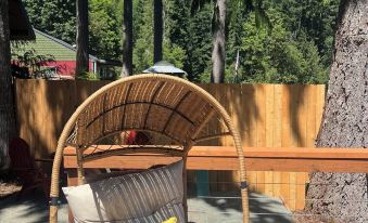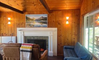 Welcome to this beautifully updated 400sqft. lakeside cabin that blends cozy charm with modern amenities! Inside you’ll find new kitchen appliances and a remodeled bathroom. The living area features a breakfast nook, electric fireplace and a stylish frame TV. Step outside to the large deck with breathtaking views of the lake. Enjoy swimming and jumping off the private dock. Unwind in the evenings with a soak in the saltwater hottub. Dine “Al fresco” at the outdoor table, complete with string lights overhead and a grill for your BBQ favorites. Don’t forget late night camp fires and s'mores at the fire pit.