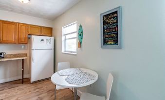 Wake up in your nautical-inspired bedroom and head to the beach for a sunrise stroll or to catch the day’s first waves. Then dig into breakfast out on the patio, or at the two-person table in the kitchen. After a full day of exploring Cocoa Beach (ask us for local tips!), grab takeout from a nearby restaurant or whip something up in the kitchen. The patio is accessed from both the living area and the bedroom, so you can end the day with a nightcap or cup of tea in the sea breeze.
