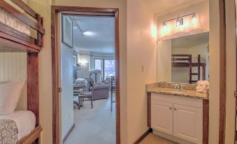 A shuttle picks up skiers just outside the building, but it was also a very close to walk to the American Flyer lift. Also it is close to the restaurants and shops in Center Village. There was a little bit of highway noise, but not bad. Beautiful view from the very large condo windows. Good communication with the property owner—He was very helpful.