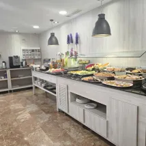 Очень удобное расположение отеля. Прекрасный отзывчивый персонал. Богатый завтрак за 12 евро на чел.