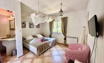 This charming little 2-bedroom house with 2 shower rooms, 2 WCs and an outdoor shower is located on the Ajaccio golf course, 40 minutes from the imperial city, at the foot of the Tour de la Castagna.