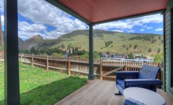 Our beautifully remolded home is said to have housed Creede’s old dance hall and is one of Creede's historic gems. It overlooks the charming town of Creede and is within walking distance of downtown. Enjoy stunning views of the Creede Cliffs and surrounding mountains through French Doors, leading you to the outdoor covered patio and the spacious fenced yard with mature trees. Our updated kitchen is perfect for multiple cooks and has a double oven and gas stovetop. A new efficient forced air furnace keeps the home nice and toasty in the winter, and an additional wood stove insert in the sitting area provides extra warmth and ambiance.