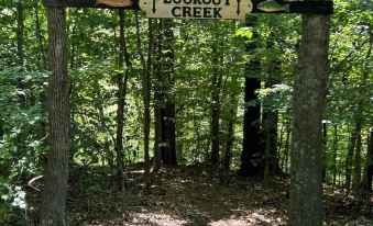 Guests are free to roam the property at their leisure. Walk down to Lookout Creek and drop a line in the water for bass and bream. Hike around the property along old farm roads and logging trails. Stop at the barn and feed the chickens. Or visit with the farm animals: Tater, the pig; Lily and Muffin, the goats; Buddy, the farm dog; and Mango, the shy, orange tabby cat.